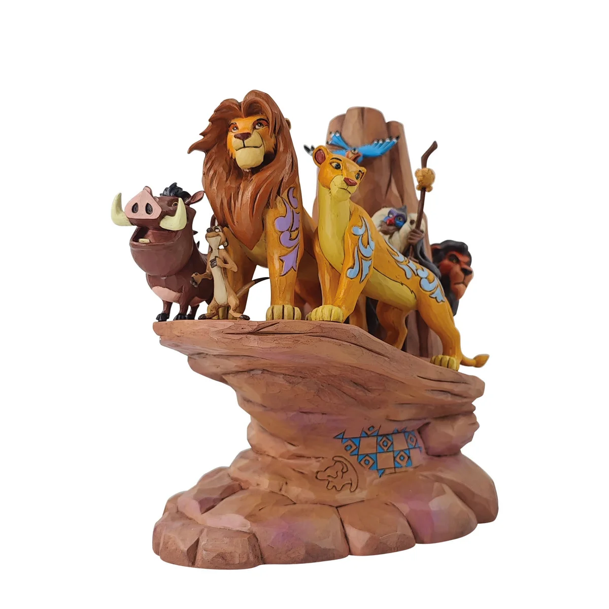 Dette er en figur ifra filmen Løvenes konge. En stolthet i sten av Jim Shore. Her er karakterene samlet, Simba, Nala, Rafiki, Scar, Zazu, Timon og Pumbaa. En figur med utrolig mange flotte detaljer som strekker seg over hele. En detalj ifra filmen da Simba ble tegnet på veggen er også med i denne figuren. Høyde 21,5cm
